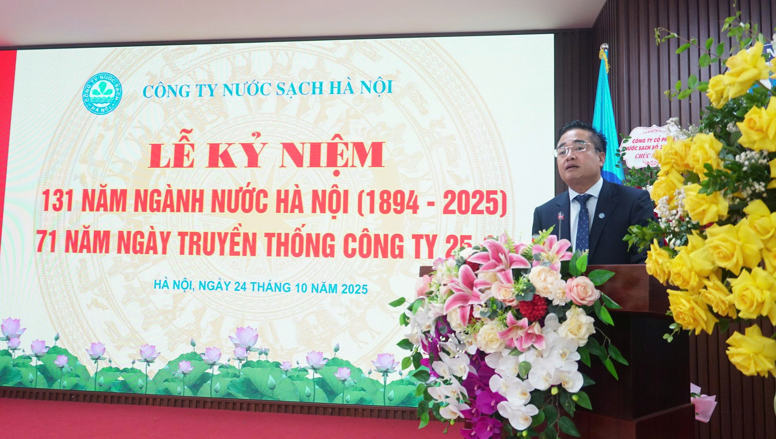 Ngày 24/10/2025, Công ty Nước sạch Hà Nội long trọng tổ chức Lễ kỷ niệm 131 năm Ngành nước Hà Nội và 71 năm ngày truyền thống Công ty (25/10/1954 - 25/10/2025). Ngày truyền thống Công ty là dịp để toàn thể CBNV cùng ôn lại chặng đường phát triển vẻ vang, tri ân các thế hệ đi trước đã cống hiến cho sự nghiệp cấp nước Thủ đô, đồng thời khơi dậy niềm tự hào và tinh thần đoàn kết, sáng tạo trong hành trình xây dựng và phát triển Công ty ngày càng hiện đại, bền vững.