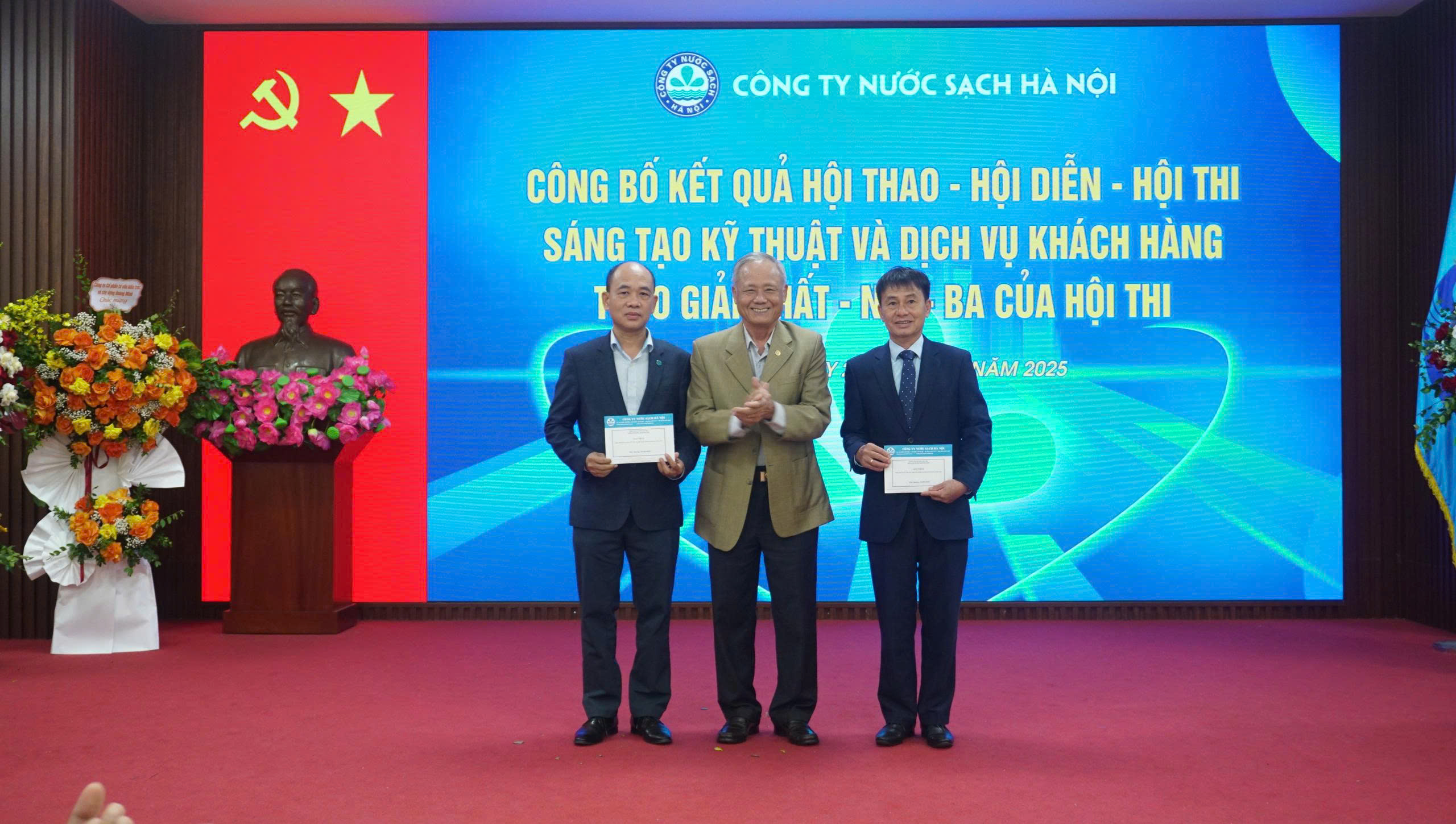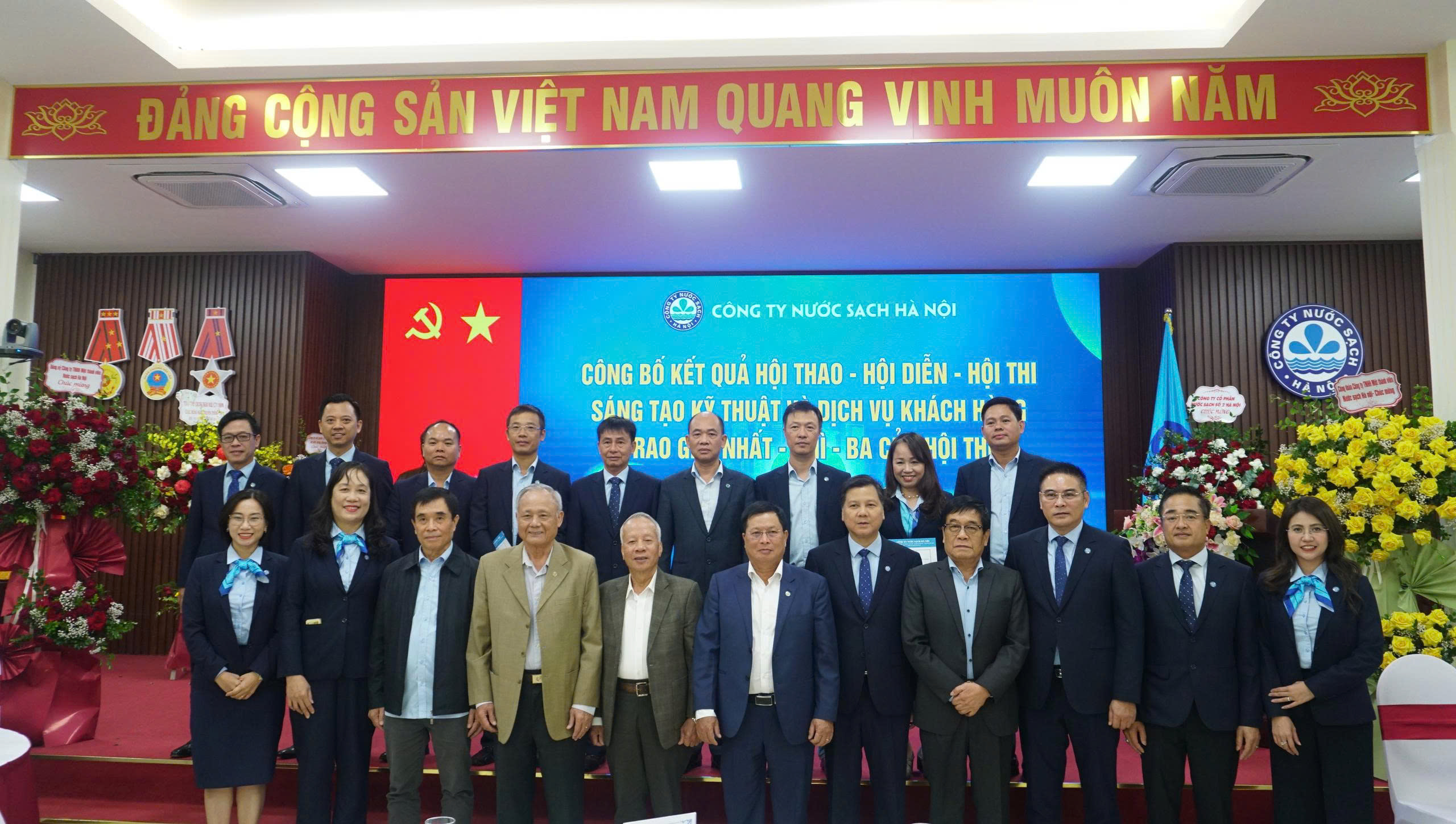 Trong 9 tháng đầu năm 2025, dưới sự chỉ đạo sát sao của tập thể Ban lãnh đạo cũng sự nỗ lực của đội ngũ CBCNV, Công ty đã hoàn thành vượt mức các chỉ tiêu sản xuất kinh doanh đã đề ra góp phần ổn định kế hoạch tài chính cũng như nâng cao thu nhập của người lao động. Để động viên người lao động cũng như nâng cao tinh thần đoàn kết, phát huy tính sáng tạo trong lao động, Công ty đã tổ chức nhiều cuộc thi chào mừng 131 năm Ngành nước Hà Nội và 71 năm ngày truyền thống Công ty như: Chương trình Hội thao với tinh thần “Khỏe để lao động sản xuất” quy tụ 900 vận động viên tham gia 5 môn thi đấu; Hội diễn văn nghệ với 23 đội thi cùng 65 tiết mục đặc sắc mang đậm truyền thống ngành nước. Và đặc biệt, để phát huy tính sáng tạo trong lao động sản xuất, Công ty đã tổ chức Hội thi sáng tạo kỹ thuật và dịch vụ khách hàng với 63 bài dự thi đến từ 30 đơn vị trong toàn Công ty. Tại Lễ kỷ niệm, Ban tổ chức đã trao giải Nhất, Nhì, Ba cho các tập thể có bài dự thi chất lượng cao.