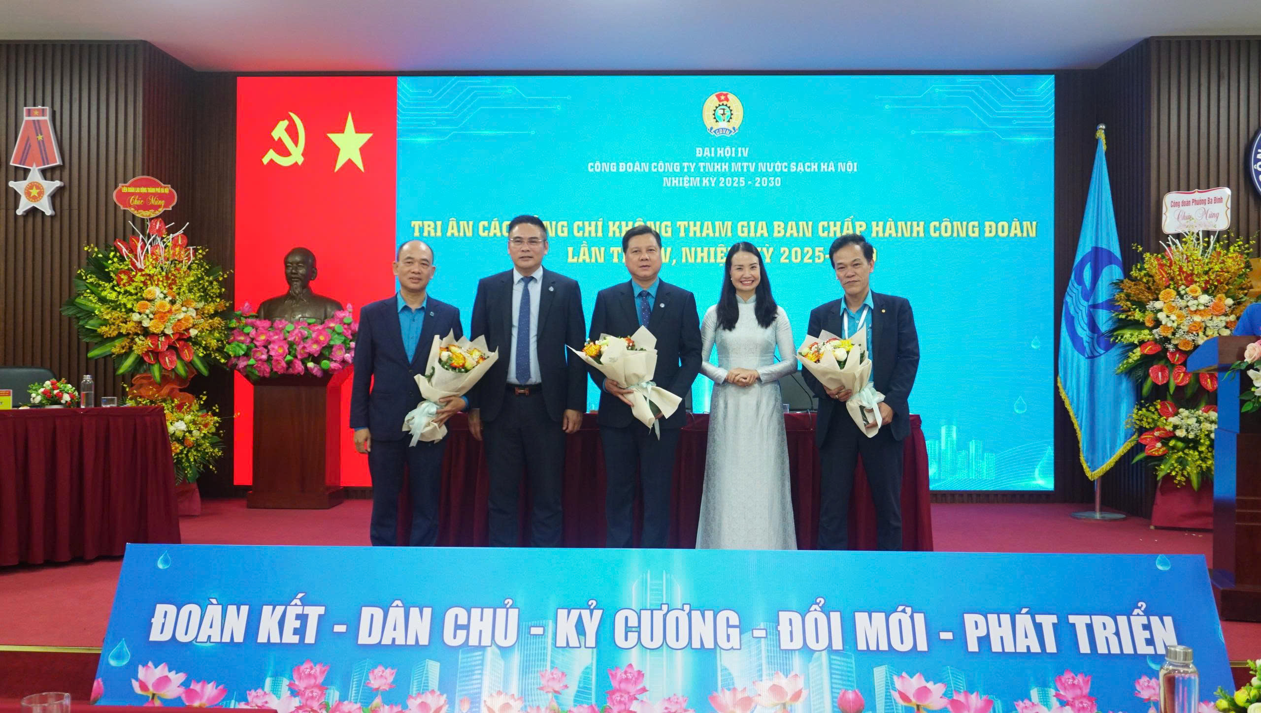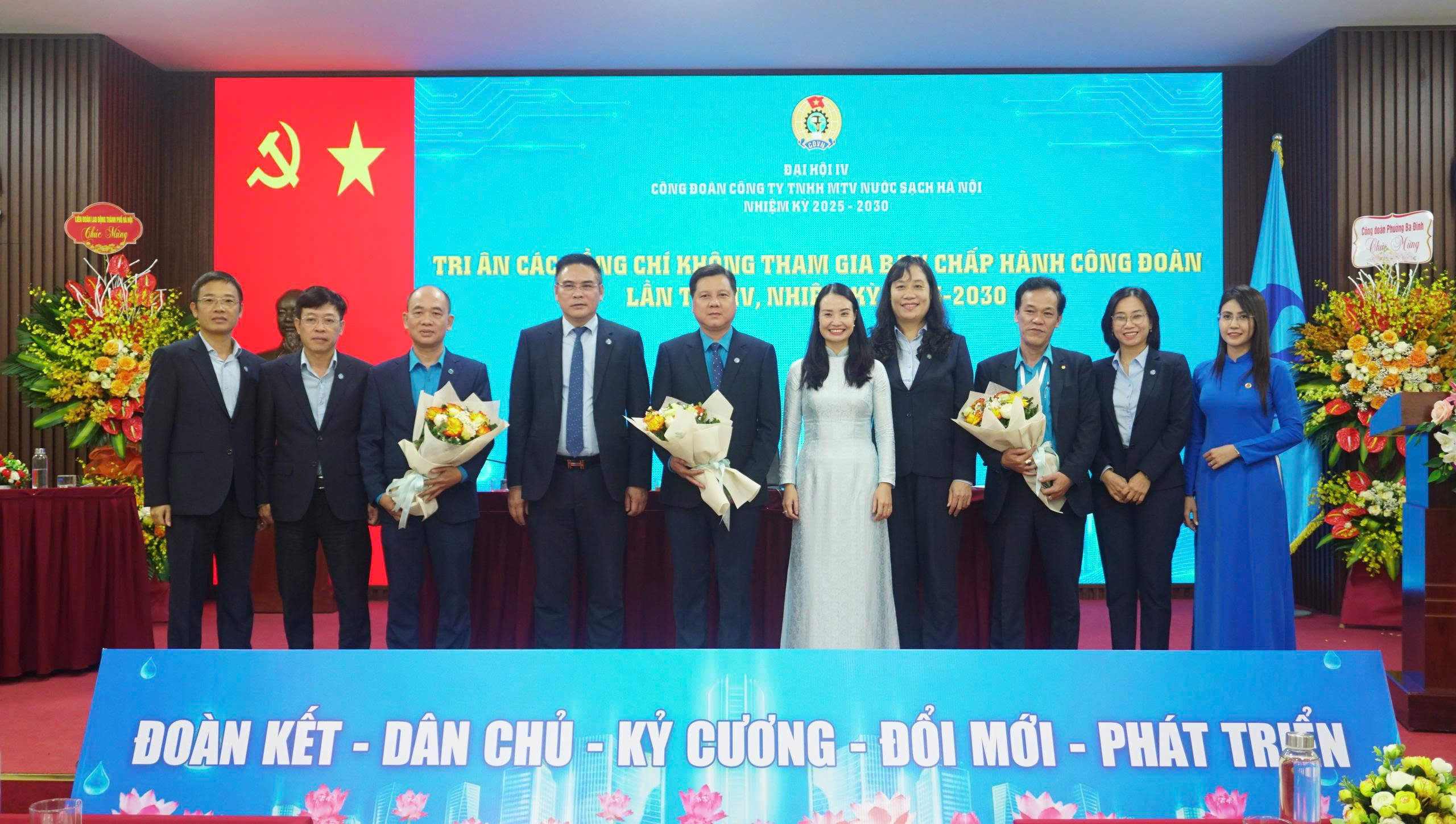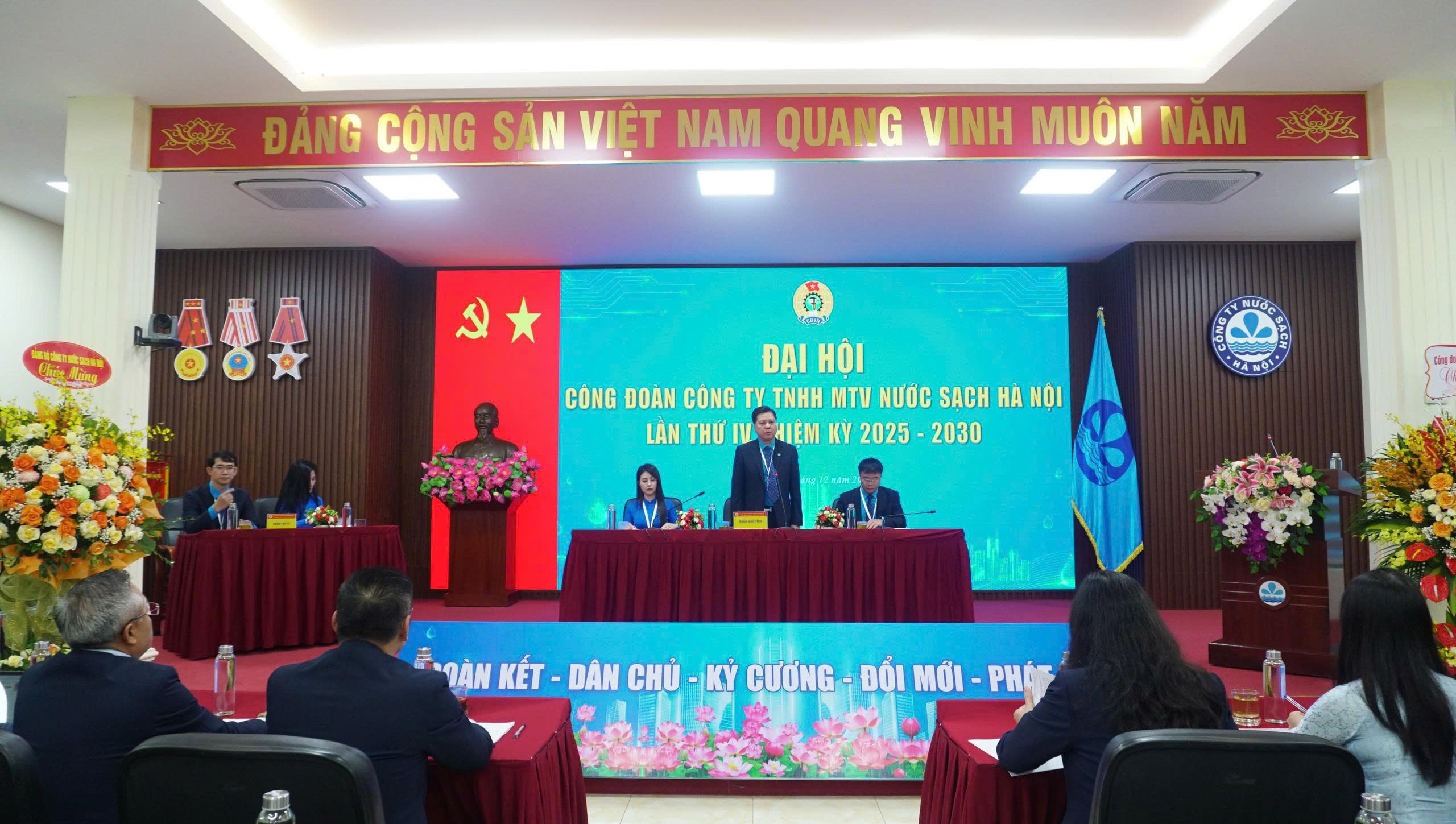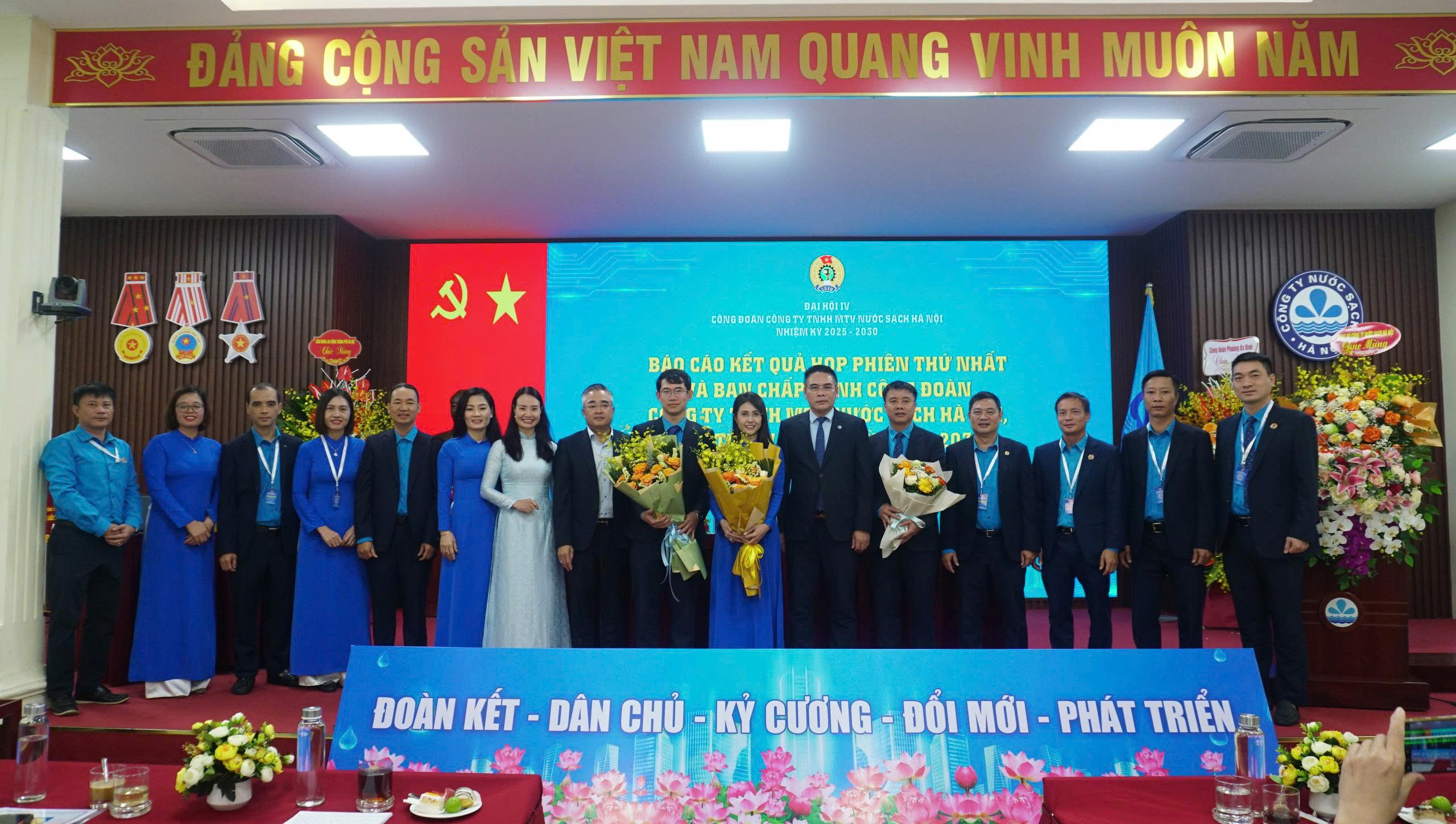 Sáng ngày 12/12/2025, Công ty Nước sạch Hà Nội đã long trọng tổ chức Đại hội Công đoàn Công ty TNHH MTV Nước sạch Hà Nội lần thứ IV, nhiệm kỳ 2025 – 2030. Với tinh thần “Đoàn kết – Dân chủ - Kỷ cương – Đổi mới – Phát triển”, Đại hội đã tập trung trí tuệ đánh giá toàn diện, khách quan những kết quả đạt được, chỉ ra những nguyên nhân, hạn chế, rút ra bài học kinh nghiệm trong quá trình tổ chức thực hiện Nghị quyết Đại hội Công đoàn Công ty TNHH MTV Nước sạch Hà Nội; Xây dựng mục tiêu, phương hướng, nhiệm vụ và giải pháp hoạt động nhiệm kỳ 2025 – 2030, nhất là những vấn đề cơ bản của hoạt động Công đoàn trong giai đoạn mới; Đóng góp ý kiến vào dự thảo Báo cáo chính trị Đại hội XVIII Công đoàn Thành phố và sửa đổi Điều lệ Công đoàn Việt Nam; Bầu ra Ban Chấp hành Công đoàn Công ty TNHH MTV Nước sạch Hà Nội khóa IV, nhiệm kỳ 2025 – 2030 đủ số lượng, đúng cơ cấu.