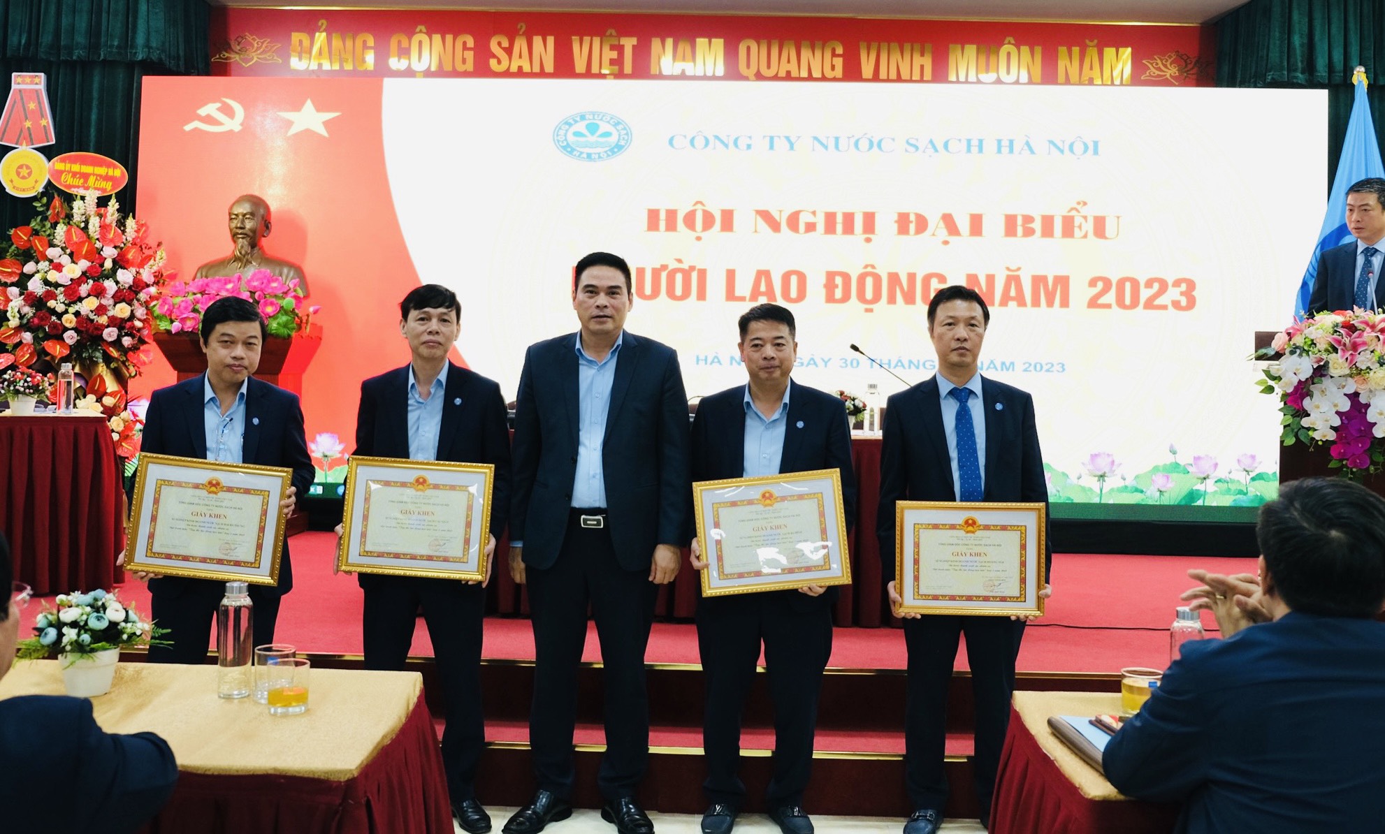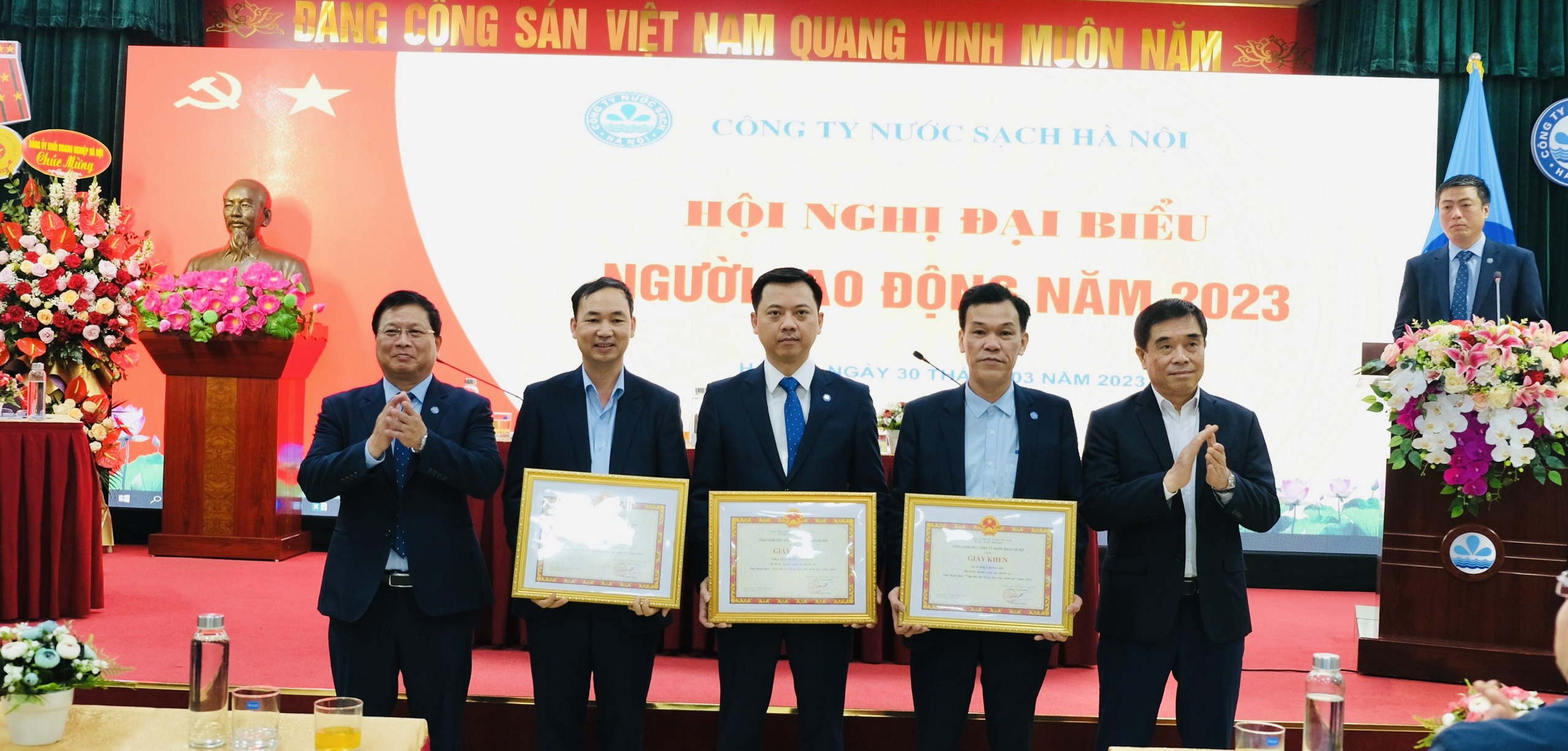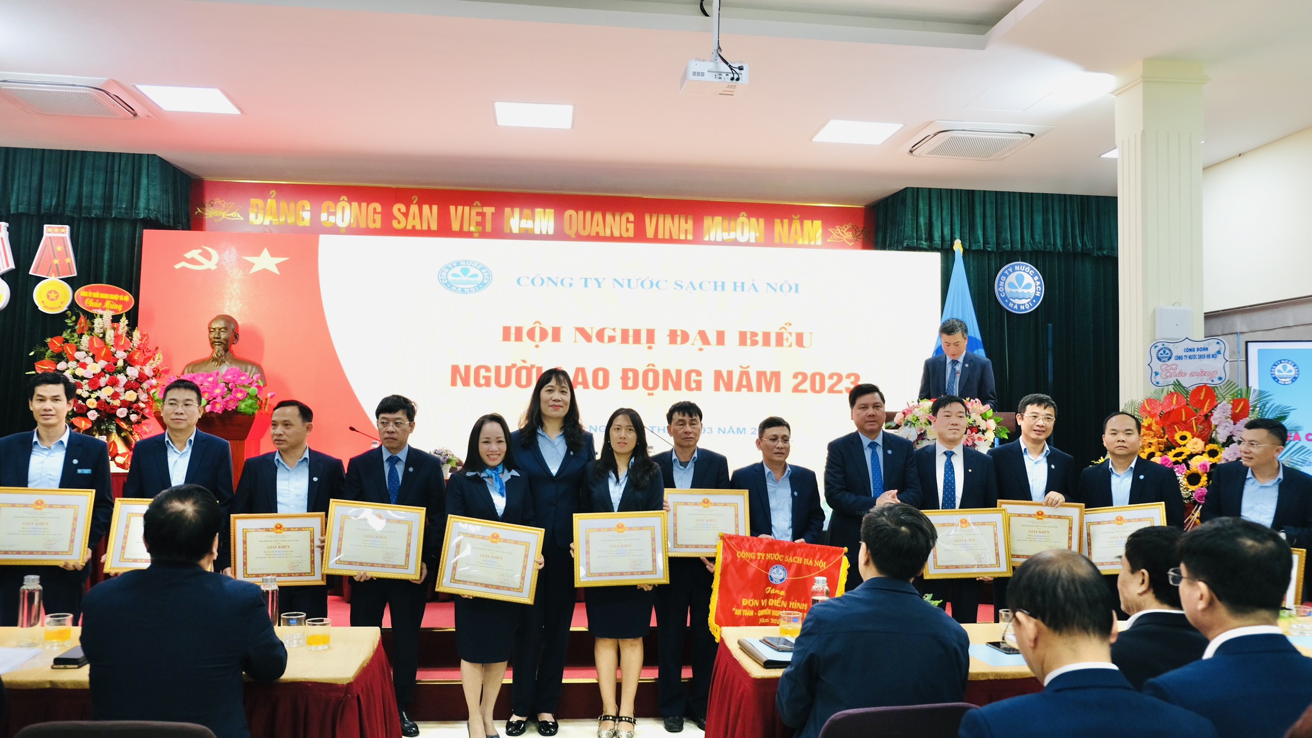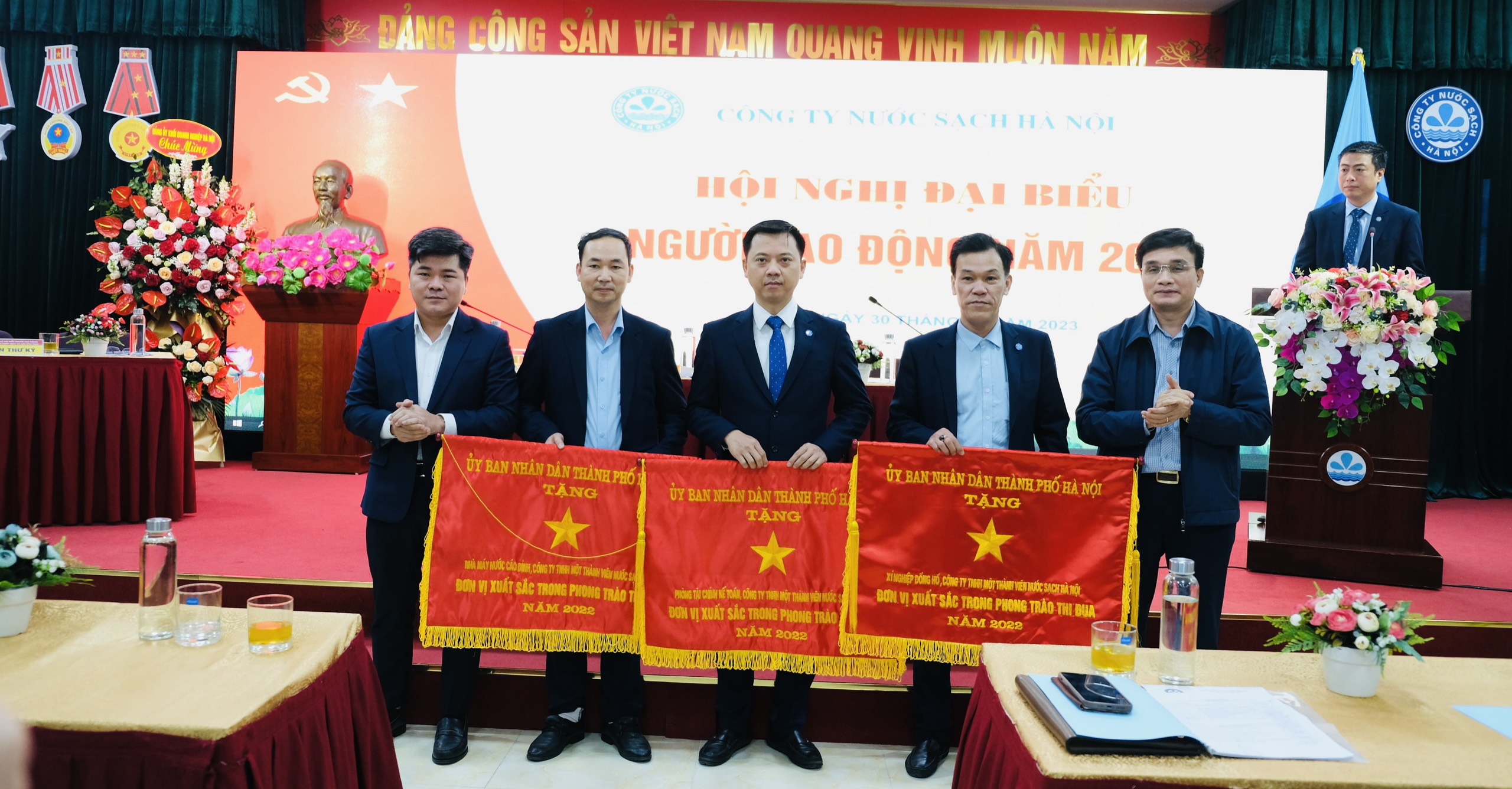 Năm 2022 với sự nỗ lực phấn đấu của toàn thể CBCNV, Công ty Nước sạch Hà Nội đã hoàn thành xuất sắc nhiệm vụ chính trị, nhiệm vụ sản xuất kinh doanh và thực hiện tốt các phong trào thi đua. Ghi nhận những thành tích đã đạt được của Công ty, UBND thành phố Hà Nội đã tặng Cờ, Bằng khen, Giấy khen cho các tập thể và cá nhân. Cụ thể: UBND Thành phố Hà Nội đã trao Cờ “Đơn vị xuất sắc phong trào thi đua” năm 2022 cho 03 tập thể: Phòng Tài chính kế toán; Nhà máy nước Cáo Đỉnh; Xí nghiệp Đồng hồ. 05 tập thể được trao danh hiệu “Tập thể lao động xuất sắc” năm 2022: Nhà máy nước Lương Yên ; Xí nghiệp kinh doanh nước sạch Hoàng Mai; Phòng Kỹ thuật; Phòng Kiểm tra chất lượng; Phòng Thanh tra Bảo vệ. 05 tập thể được trao Bằng khen “Đã có thành tích trong phong trào thi đua thực hiện nhiệm vụ” năm 2022: Nhà máy nước Bắc Thăng Long; Xí nghiệp kinh doanh nước sạch Ba Đình; Phòng Kế hoạch Đầu tư; Ban quản lý dự án đầu tư công trình cấp nước; Nhà máy nước Gia Lâm. Cùng với danh hiệu thi đua các tập thể đạt được, UBND thành phố Hà Nội đã tặng Bằng khen năm 2022 cho 06 CBCNV của Công ty nước sạch Hà Nội: Ông Phạm Việt Phương, Giám đốc Xí nghiệp KDNS Hoàng Mai; Ông Phùng Trắc Thắng, Công nhân Quản lý mạng Xí nghiệp KDNS Ba Đình; Ông Nguyễn Quang Sáng, Công nhân Vận hành bơm XN KDNS Hoàng Mai; Ông Dương Văn Tân, Công nhân Xây lắp Xí nghiệp Đồng hồ; Ông Phạm Thanh Bình, Nhân viên phòng Tài chính kế toán; Bà Trần Thị Nhan, Công nhân Vận hành bơm Nhà máy nước Cáo Đỉnh.