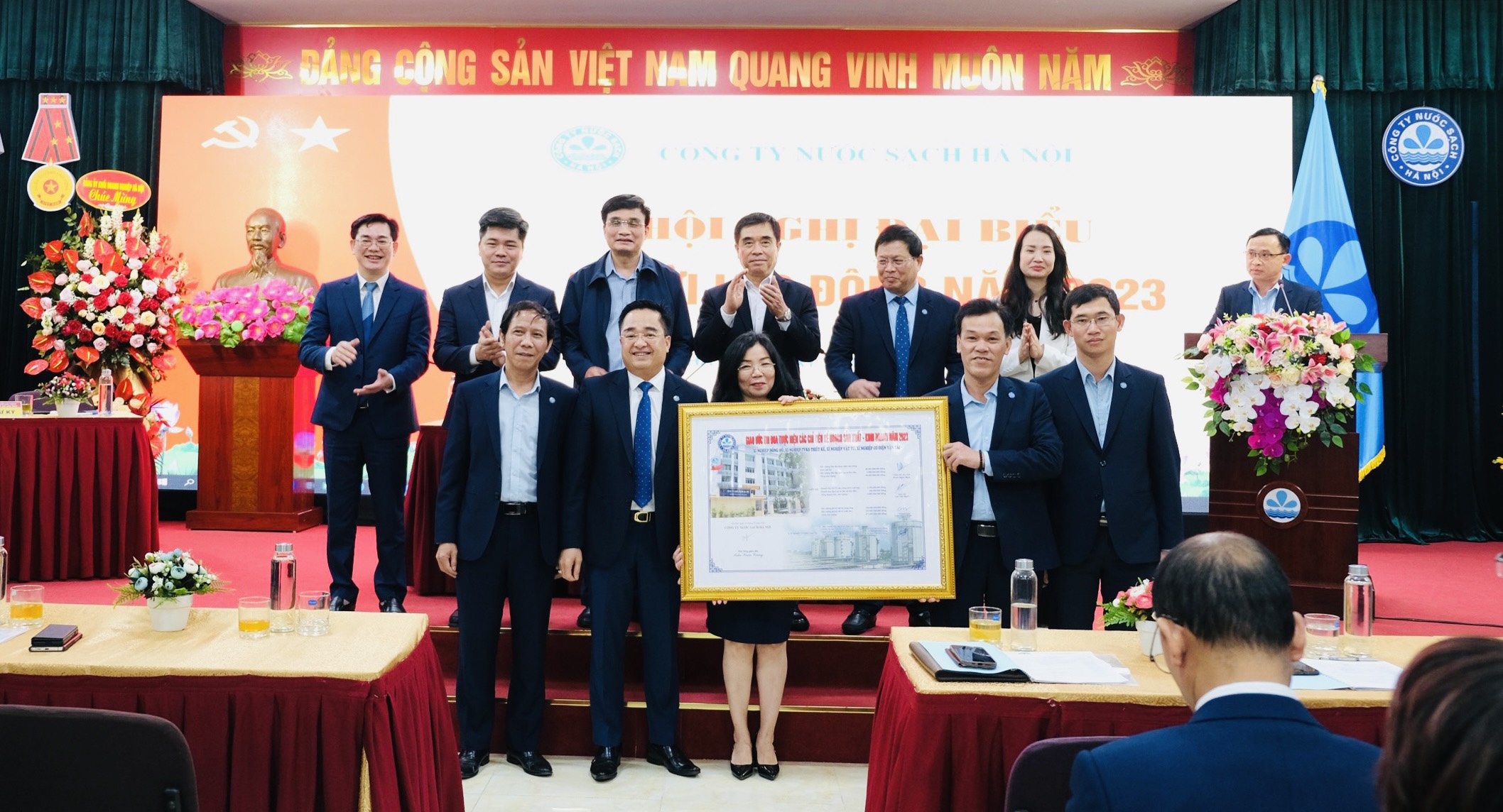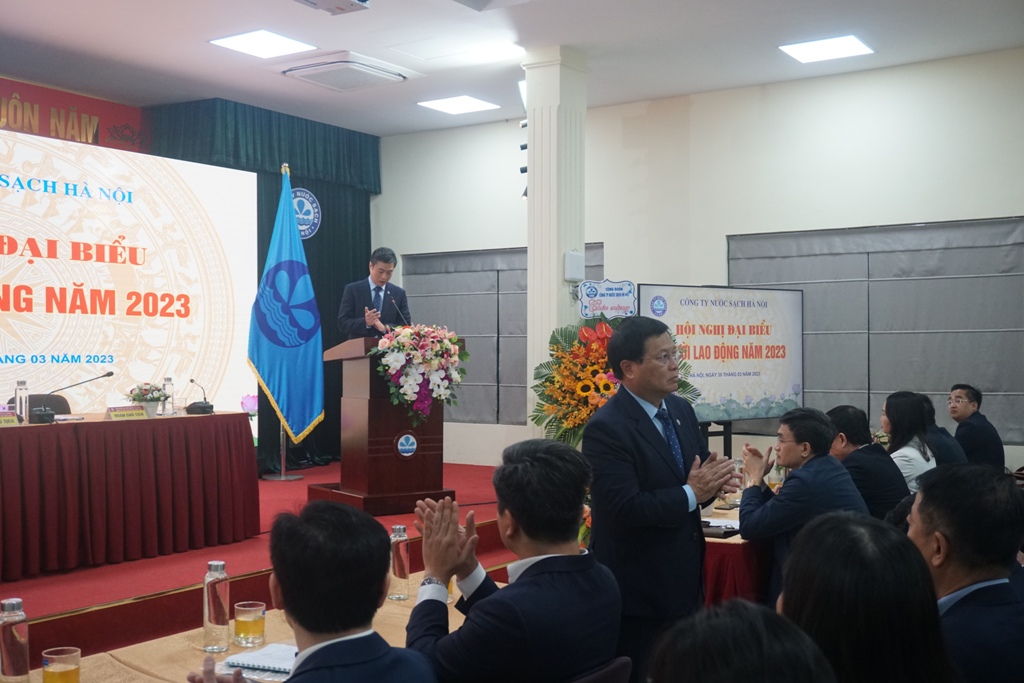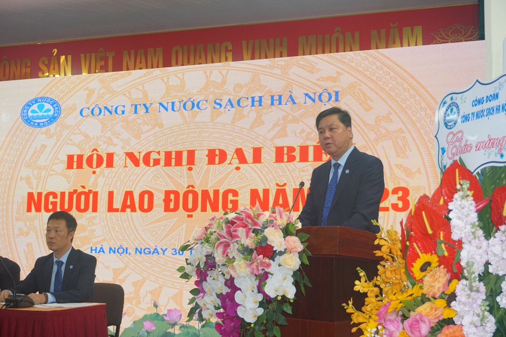 Hội nghị đã lắng nghe ông Nguyễn Trường Sơn, Bí thư Đảng ủy khối doanh nghiệp Hà Nội chúc mừng những thành tích đã đạt được của Công ty Nước sạch Hà Nội trong năm vừa qua. Bí thư Đảng ủy Khối yêu cầu trong năm 2023, Công ty tiếp tục nâng cao chất lượng dịch vụ cấp nước cho người dân Thủ đô Hà Nội và mở rộng hệ thống cấp nước, mạng lưới cấp nước cho các khu vực ngoại thành đặc biệt là 2 huyện Đông Anh và Gia Lâm theo chủ trương của Thành phố. Tiếp tục bồi dưỡng đội ngũ cán bộ trẻ kế cận, tiếp nối các giá trị truyền thống và xây dựng Công ty Nước sạch Hà Nội ngày một vững mạnh, xứng đáng là đơn vị cấp nước chủ đạo của Thủ đô.