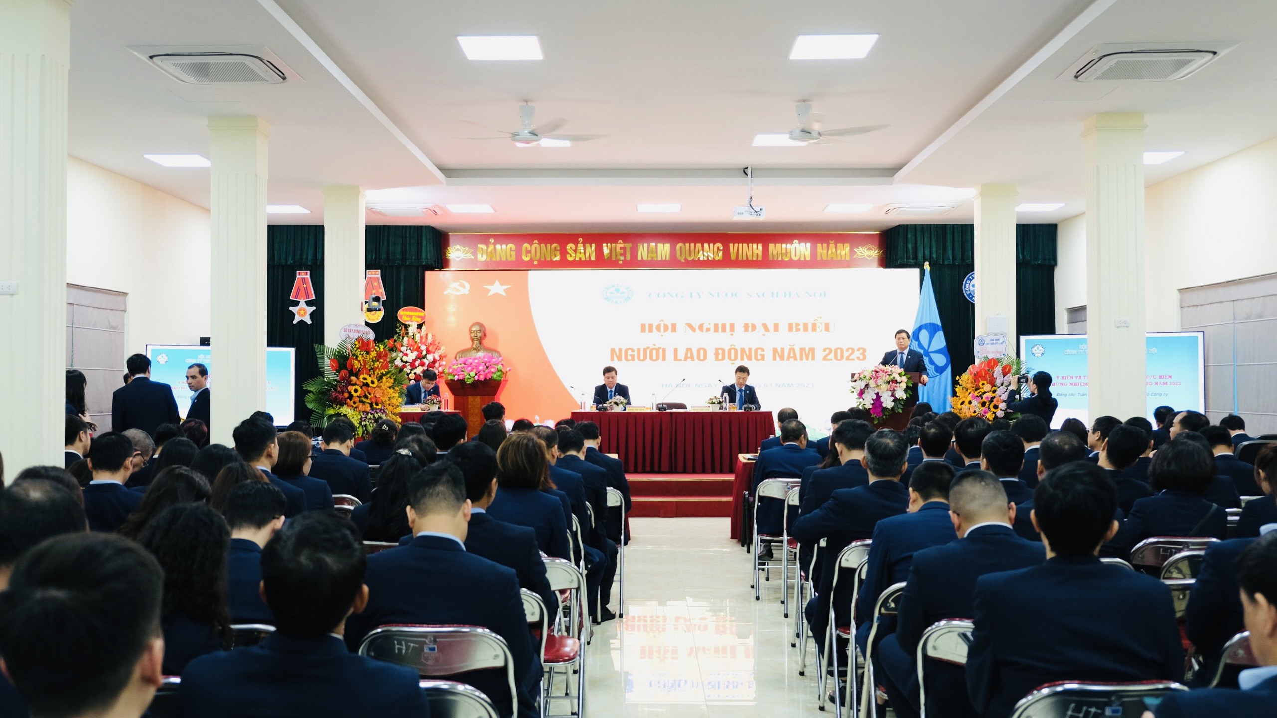 Sáng ngày 30/03/2023, Công ty Nước sạch Hà Nội đã tổ chức thành công Hội nghị người lao động năm 2023 với chủ đề “Kỷ cương – Đoàn kết – Sáng tạo – Hành động – Phát triển”. Hội nghị là diễn đàn tập trung dân chủ để người lao động trực tiếp tham gia ý kiến, giám sát những vấn đề liên quan đến quyền, lợi ích hợp pháp, nghĩa vụ và trách nhiệm trong hoạt động sản xuất kinh doanh của Công ty.