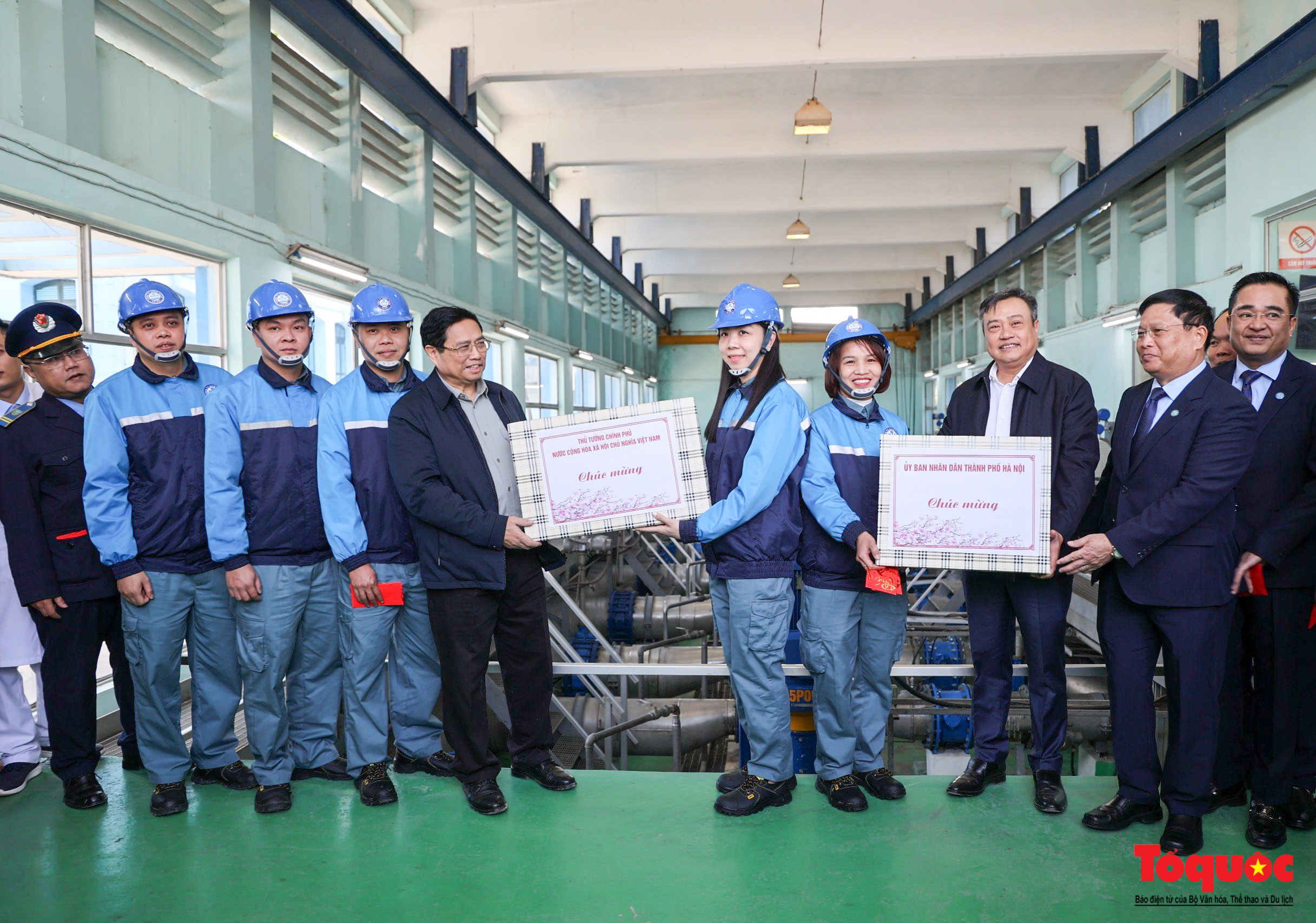 Thủ tướng Chính phủ Phạm Minh Chính đến thăm và chúc Tết các cán bộ, công nhân viên tại Công ty Nước sạch Hà Nội